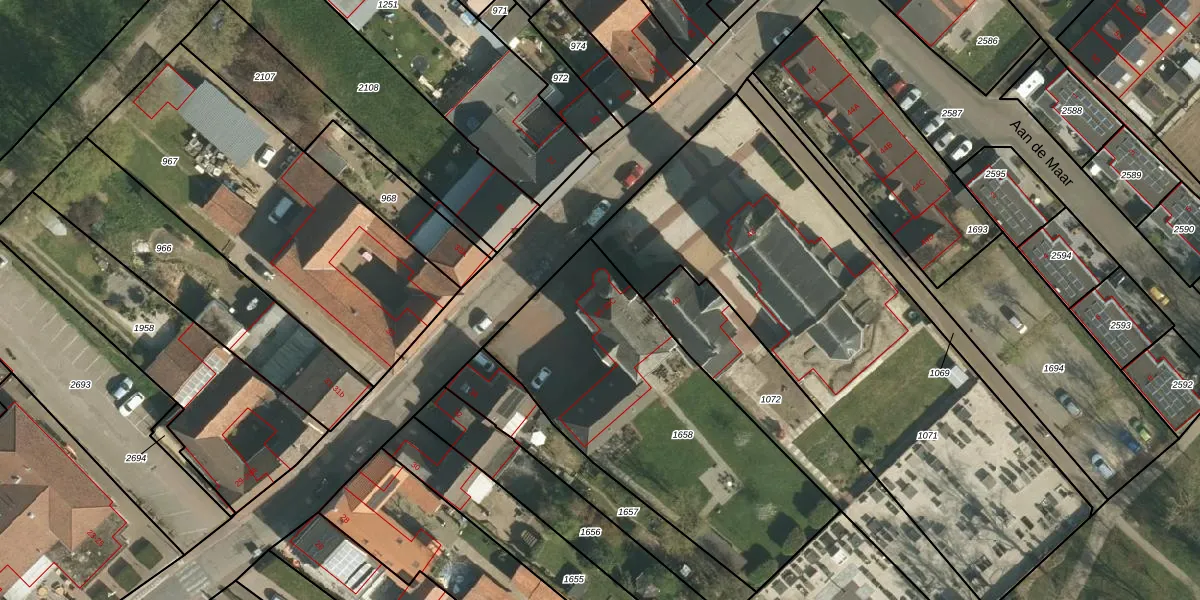 Kerkstraat 38-B is gelegen op kadastraal perceel OBK00D1658. Deze kadastrale aanduiding is uniek en wordt gebruikt door het Kadaster om eigendomsrechten en andere zakelijke rechten vast te leggen. Het perceel maakt onderdeel uit van de kadastrale gemeente Oirsbeek.