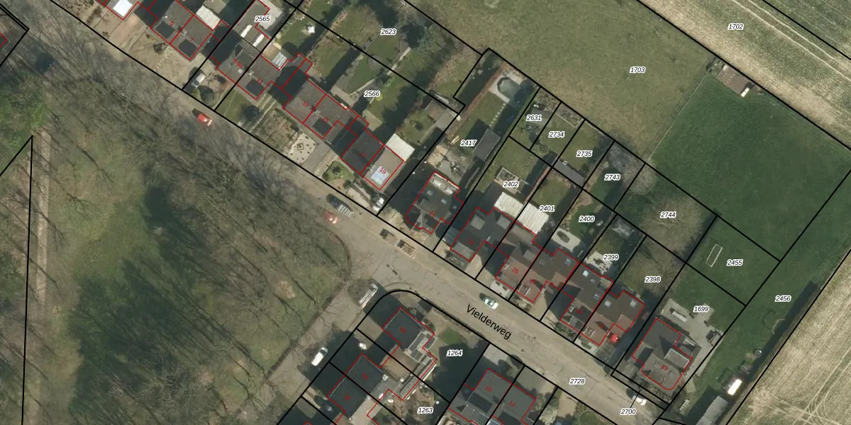 Vielderweg 21 is gelegen op kadastraal perceel OBK00D2417. Deze kadastrale aanduiding is uniek en wordt gebruikt door het Kadaster om eigendomsrechten en andere zakelijke rechten vast te leggen. Het perceel maakt onderdeel uit van de kadastrale gemeente Oirsbeek.