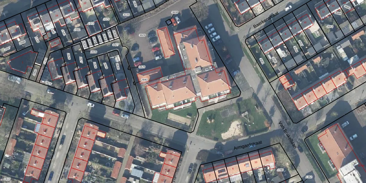 Het perceel waarop Armgardstraat 35 staat heeft een oppervlakte van 2974 m². Dit is een zeer groot perceel. De perceeloppervlakte wordt geregistreerd door het Kadaster. Gedetailleerde informatie over de maten van dit perceel kunt u vinden in het rapport Kadastrale kaart met maatvoering van Armgardstraat 35.