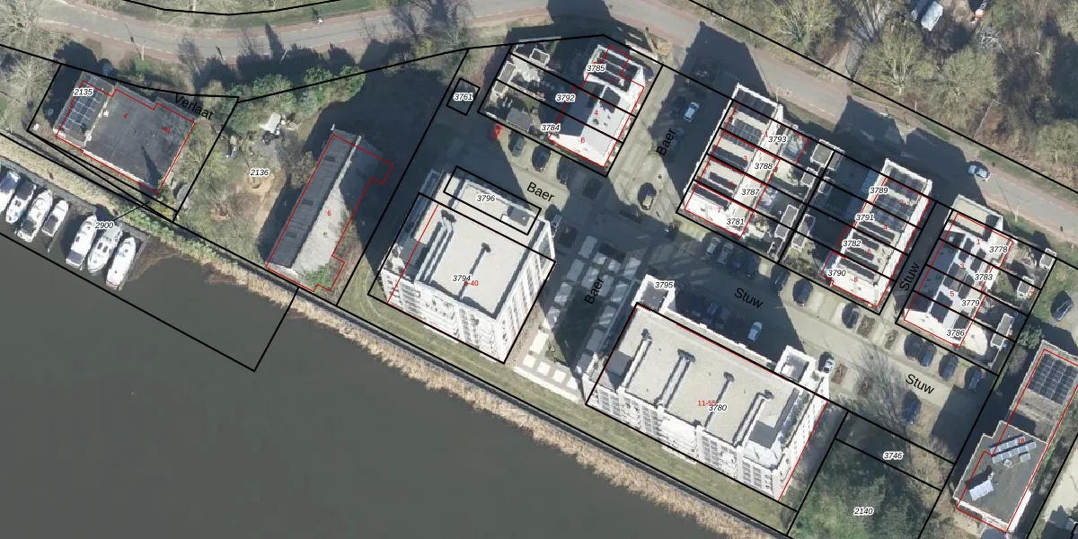 Het perceel waarop Baer 34 staat heeft een oppervlakte van 597 m². Dit is een groot perceel. De perceeloppervlakte wordt geregistreerd door het Kadaster. Gedetailleerde informatie over de maten van dit perceel kunt u vinden in het rapport Kadastrale kaart met maatvoering van Baer 34.