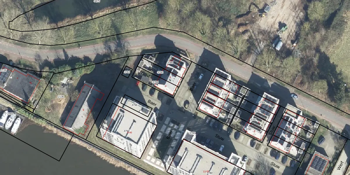 Gebruik de zoekbalk of klik op een perceel voor informatie over de adressen binnen dit perceel.