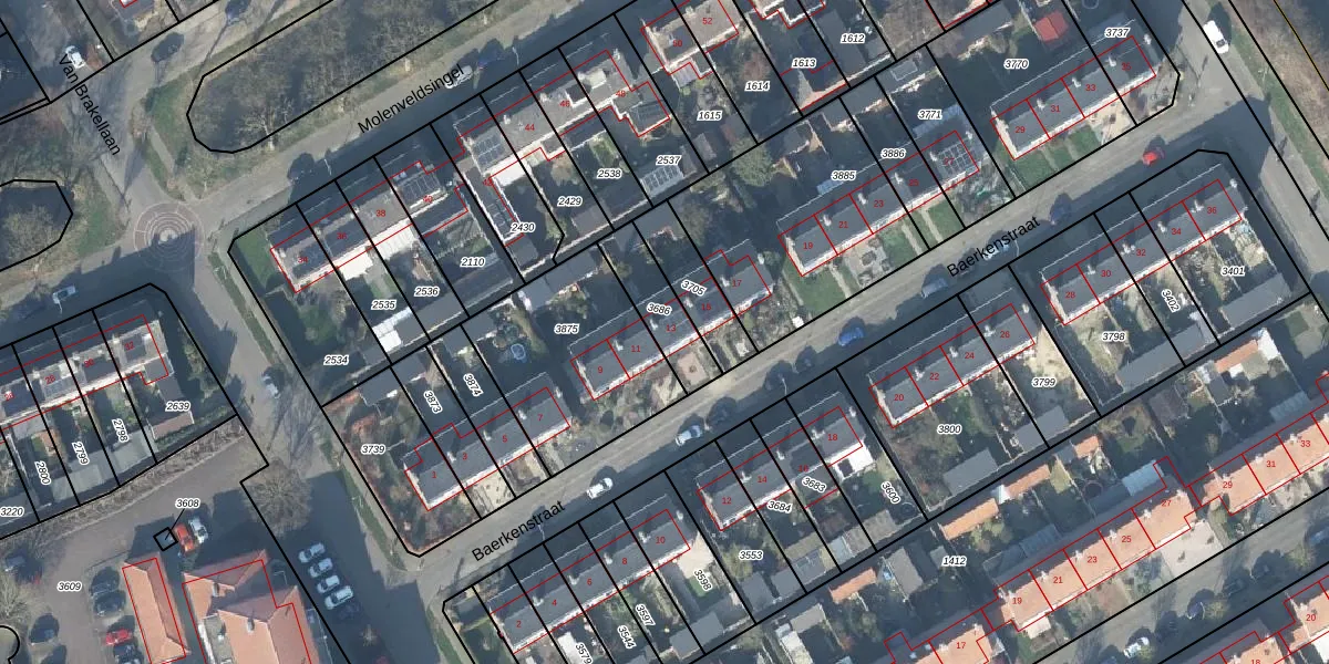Gebruik de zoekbalk of klik op een perceel voor informatie over de adressen binnen dit perceel.