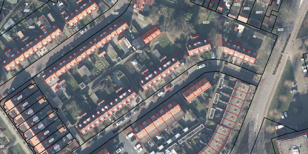 Beatrixstraat 29 is gelegen op kadastraal perceel DBG02B3596. Deze kadastrale aanduiding is uniek en wordt gebruikt door het Kadaster om eigendomsrechten en andere zakelijke rechten vast te leggen. Het perceel maakt onderdeel uit van de kadastrale gemeente Doesburg.