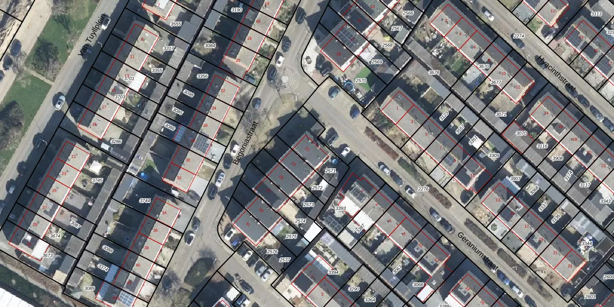 Het perceel waarop Begoniastraat 21 staat heeft een oppervlakte van 261 m². Dit is een middelgroot perceel. De perceeloppervlakte wordt geregistreerd door het Kadaster. Gedetailleerde informatie over de maten van dit perceel kunt u vinden in het rapport Kadastrale kaart met maatvoering van Begoniastraat 21.