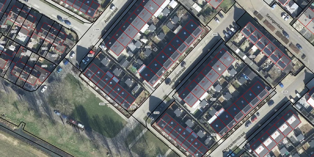 Het perceel waarop Begoniastraat 56 staat heeft een oppervlakte van 3353 m². Dit is een zeer groot perceel. De perceeloppervlakte wordt geregistreerd door het Kadaster. Gedetailleerde informatie over de maten van dit perceel kunt u vinden in het rapport Kadastrale kaart met maatvoering van Begoniastraat 56.