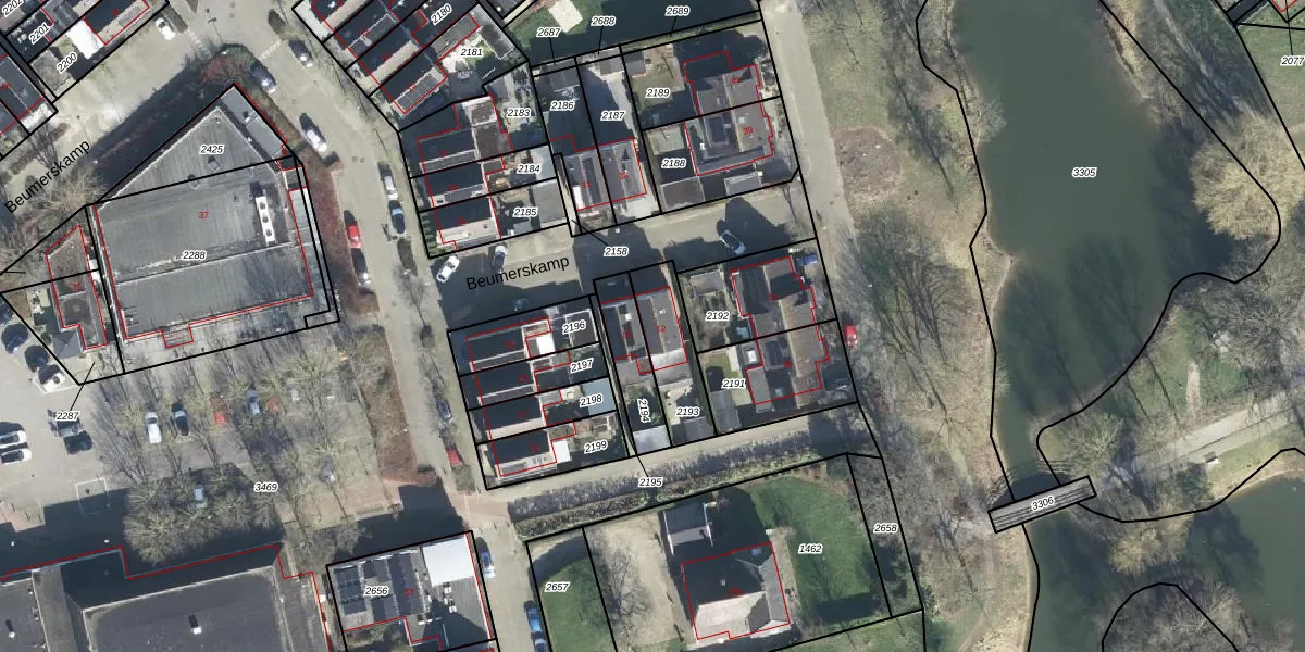 Het perceel waarop Beumerskamp 12 staat heeft een oppervlakte van 193 m². Dit is een middelgroot perceel. De perceeloppervlakte wordt geregistreerd door het Kadaster. Gedetailleerde informatie over de maten van dit perceel kunt u vinden in het rapport Kadastrale kaart met maatvoering van Beumerskamp 12.