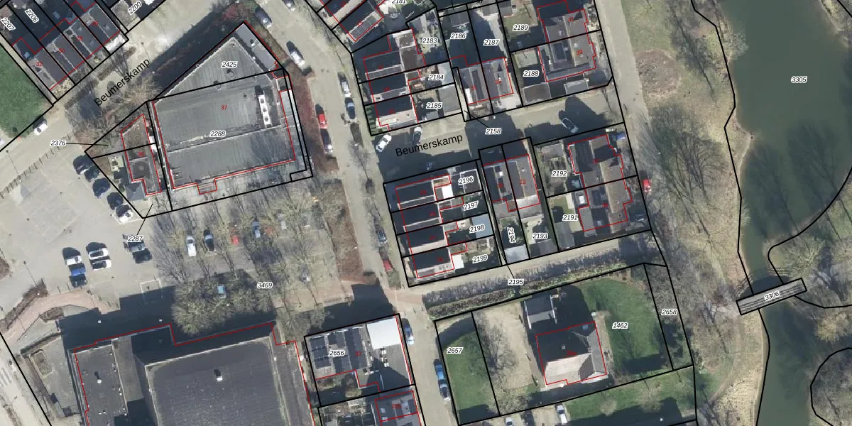 Gebruik de zoekbalk of klik op een perceel voor informatie over de adressen binnen dit perceel.