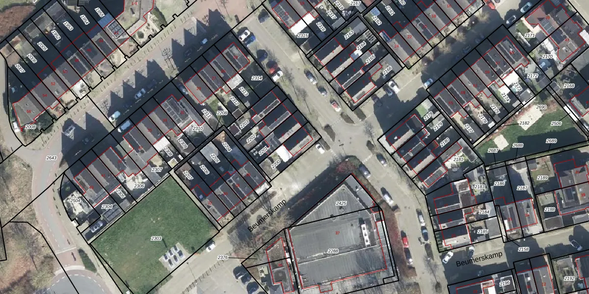 Gebruik de zoekbalk of klik op een perceel voor informatie over de adressen binnen dit perceel.
