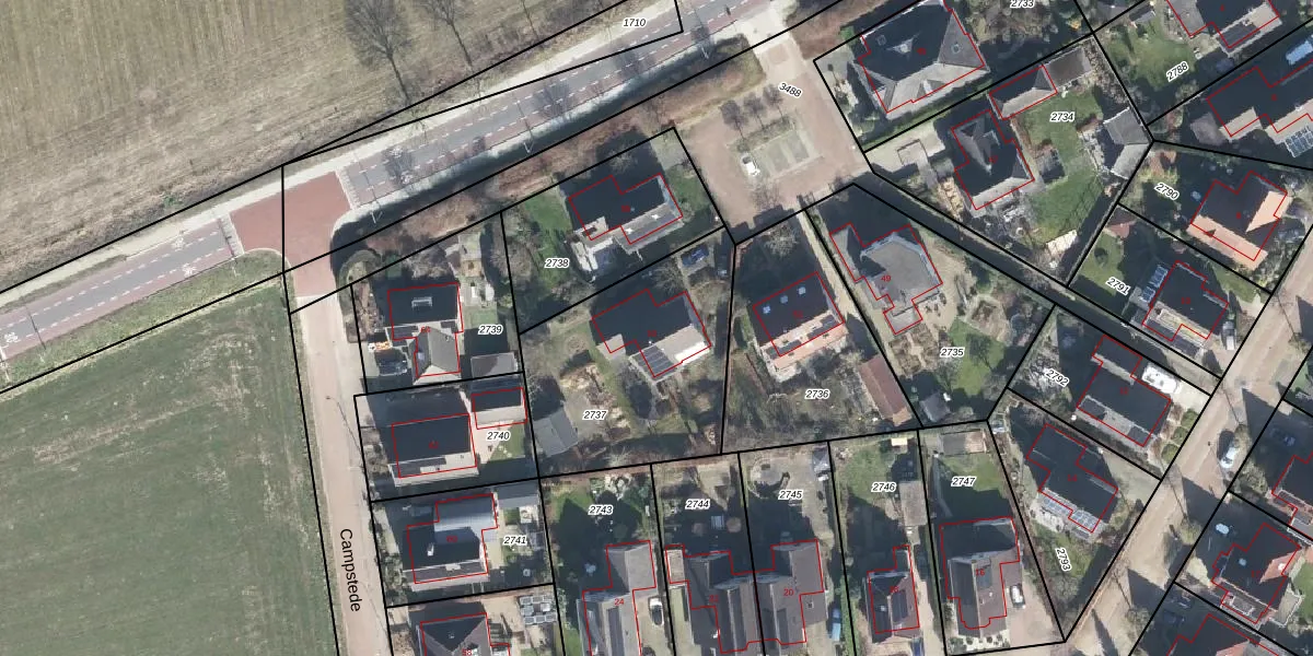 Gebruik de zoekbalk of klik op een perceel voor informatie over de adressen binnen dit perceel.