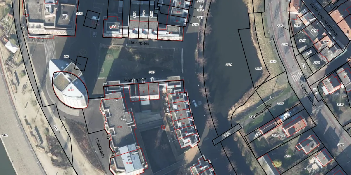 Het perceel waarop Bleekerskade 18 staat heeft een oppervlakte van 1,0 ha. Dit is een zeer groot perceel. De perceeloppervlakte wordt geregistreerd door het Kadaster. Gedetailleerde informatie over de maten van dit perceel kunt u vinden in het rapport Kadastrale kaart met maatvoering van Bleekerskade 18.