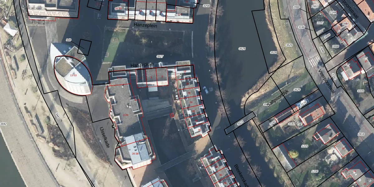 Het perceel waarop Bleekerskade 22 staat heeft een oppervlakte van 1,0 ha. Dit is een zeer groot perceel. De perceeloppervlakte wordt geregistreerd door het Kadaster. Gedetailleerde informatie over de maten van dit perceel kunt u vinden in het rapport Kadastrale kaart met maatvoering van Bleekerskade 22.