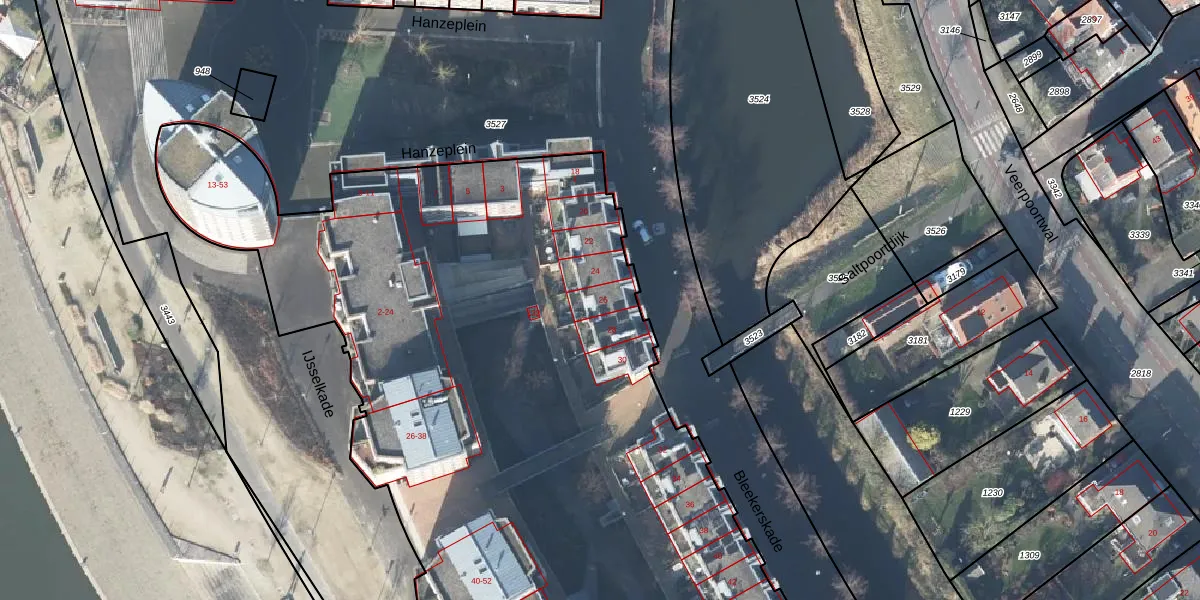 Het perceel waarop Bleekerskade 26 staat heeft een oppervlakte van 1,0 ha. Dit is een zeer groot perceel. De perceeloppervlakte wordt geregistreerd door het Kadaster. Gedetailleerde informatie over de maten van dit perceel kunt u vinden in het rapport Kadastrale kaart met maatvoering van Bleekerskade 26.