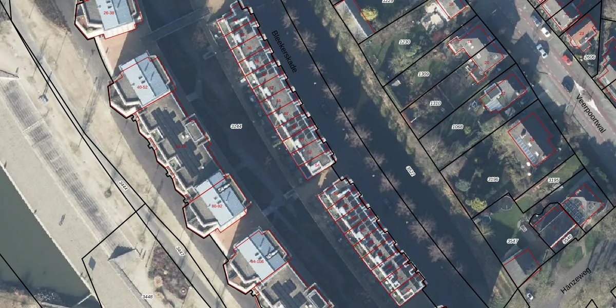 Het perceel waarop Bleekerskade 52 staat heeft een oppervlakte van 1,0 ha. Dit is een zeer groot perceel. De perceeloppervlakte wordt geregistreerd door het Kadaster. Gedetailleerde informatie over de maten van dit perceel kunt u vinden in het rapport Kadastrale kaart met maatvoering van Bleekerskade 52.