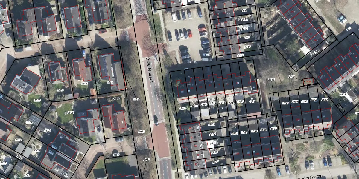 Het perceel waarop Breedestraat 87 staat heeft een oppervlakte van 243 m². Dit is een middelgroot perceel. De perceeloppervlakte wordt geregistreerd door het Kadaster. Gedetailleerde informatie over de maten van dit perceel kunt u vinden in het rapport Kadastrale kaart met maatvoering van Breedestraat 87.