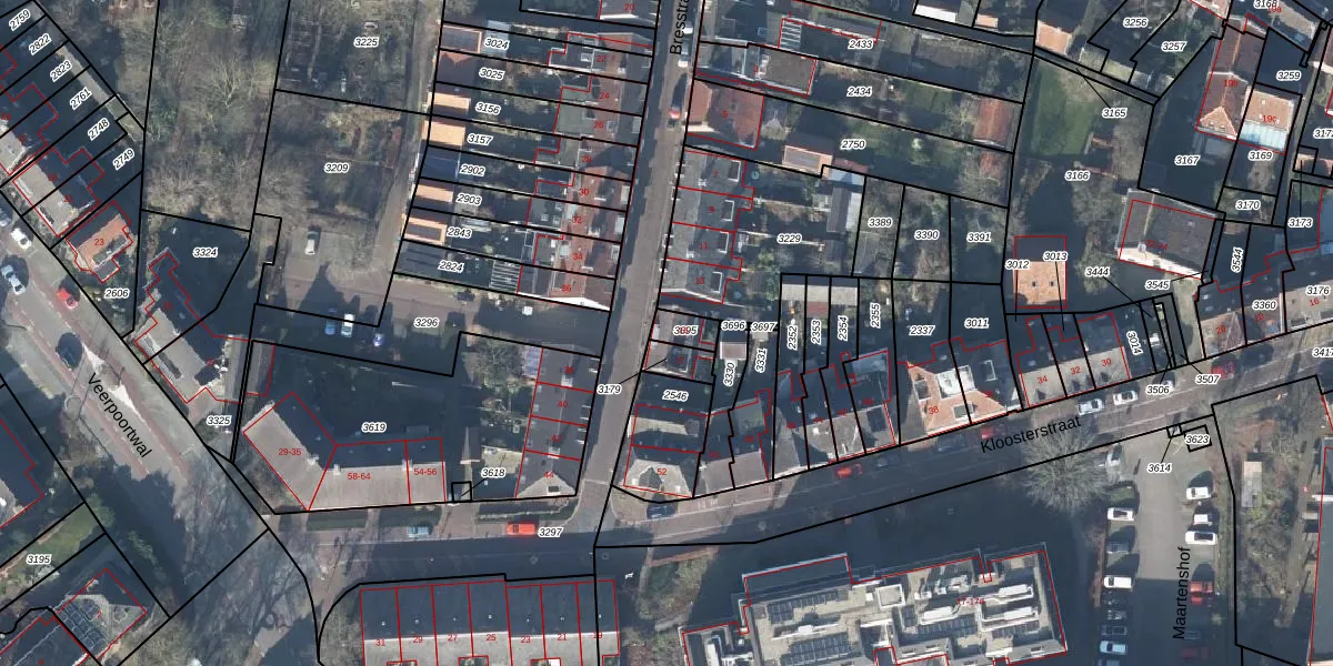 Het perceel waarop Bresstraat 15 staat heeft een oppervlakte van 43 m². Dit is een klein perceel. De perceeloppervlakte wordt geregistreerd door het Kadaster. Gedetailleerde informatie over de maten van dit perceel kunt u vinden in het rapport Kadastrale kaart met maatvoering van Bresstraat 15.
