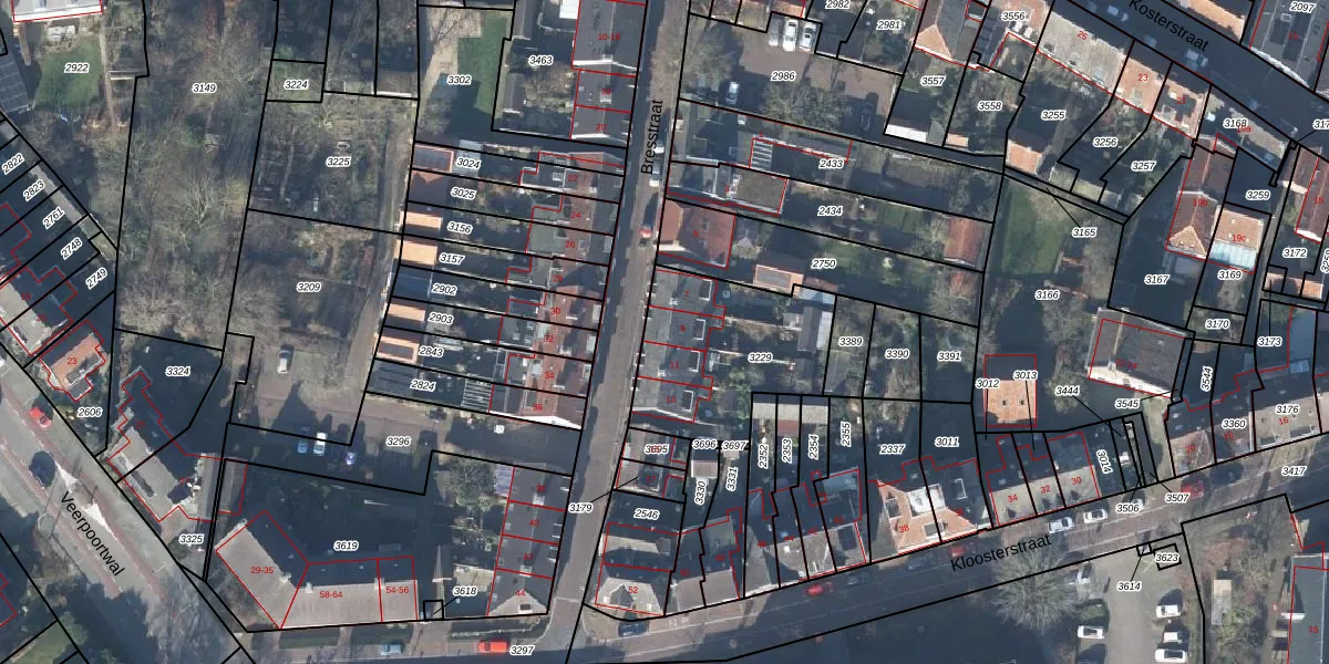 Het perceel waarop Bresstraat 9 staat heeft een oppervlakte van 584 m². Dit is een groot perceel. De perceeloppervlakte wordt geregistreerd door het Kadaster. Gedetailleerde informatie over de maten van dit perceel kunt u vinden in het rapport Kadastrale kaart met maatvoering van Bresstraat 9.