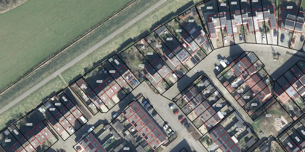 Het perceel waarop Broekhuizen 48 staat heeft een oppervlakte van 415 m². Dit is een groot perceel. De perceeloppervlakte wordt geregistreerd door het Kadaster. Gedetailleerde informatie over de maten van dit perceel kunt u vinden in het rapport Kadastrale kaart met maatvoering van Broekhuizen 48.