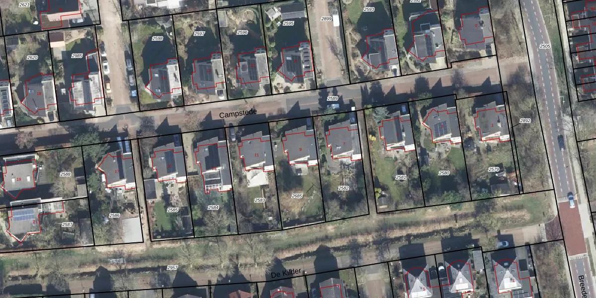 Gebruik de zoekbalk of klik op een perceel voor informatie over de adressen binnen dit perceel.