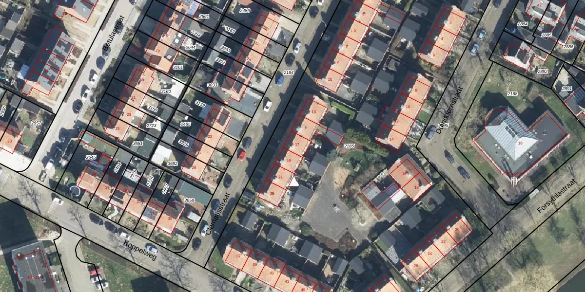 Het perceel waarop Clematisstraat 17 staat heeft een oppervlakte van 8280 m². Dit is een zeer groot perceel. De perceeloppervlakte wordt geregistreerd door het Kadaster. Gedetailleerde informatie over de maten van dit perceel kunt u vinden in het rapport Kadastrale kaart met maatvoering van Clematisstraat 17.