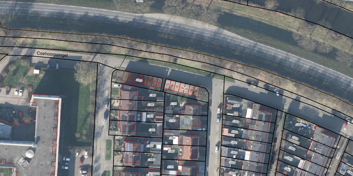 Het perceel waarop Coehoornsingel 22 staat heeft een oppervlakte van 169 m². Dit is een middelgroot perceel. De perceeloppervlakte wordt geregistreerd door het Kadaster. Gedetailleerde informatie over de maten van dit perceel kunt u vinden in het rapport Kadastrale kaart met maatvoering van Coehoornsingel 22.