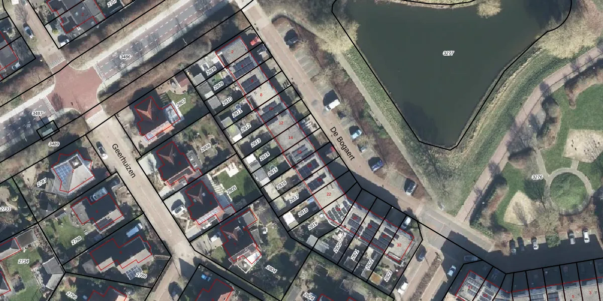 Gebruik de zoekbalk of klik op een perceel voor informatie over de adressen binnen dit perceel.