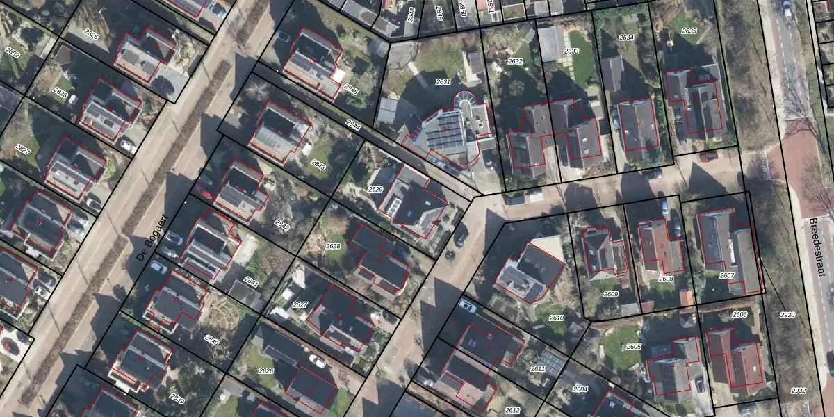 Gebruik de zoekbalk of klik op een perceel voor informatie over de adressen binnen dit perceel.