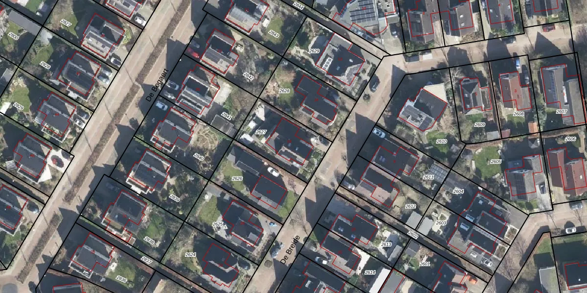 Gebruik de zoekbalk of klik op een perceel voor informatie over de adressen binnen dit perceel.