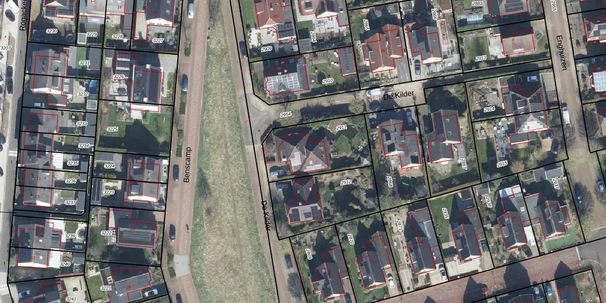 Het perceel waarop De Kilder 37 staat heeft een oppervlakte van 592 m². Dit is een groot perceel. De perceeloppervlakte wordt geregistreerd door het Kadaster. Gedetailleerde informatie over de maten van dit perceel kunt u vinden in het rapport Kadastrale kaart met maatvoering van De Kilder 37.