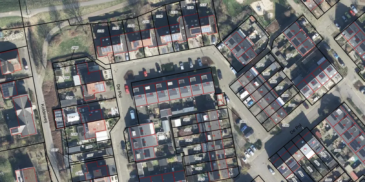 Het perceel waarop De Pol 56 staat heeft een oppervlakte van 2165 m². Dit is een zeer groot perceel. De perceeloppervlakte wordt geregistreerd door het Kadaster. Gedetailleerde informatie over de maten van dit perceel kunt u vinden in het rapport Kadastrale kaart met maatvoering van De Pol 56.