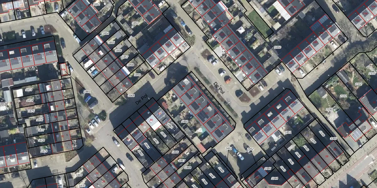 Het perceel waarop De Pol 88 staat heeft een oppervlakte van 940 m². Dit is een groot perceel. De perceeloppervlakte wordt geregistreerd door het Kadaster. Gedetailleerde informatie over de maten van dit perceel kunt u vinden in het rapport Kadastrale kaart met maatvoering van De Pol 88.