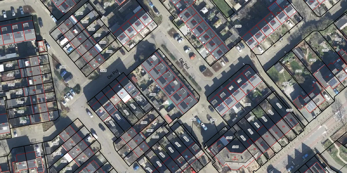 Het perceel waarop De Pol 92 staat heeft een oppervlakte van 940 m². Dit is een groot perceel. De perceeloppervlakte wordt geregistreerd door het Kadaster. Gedetailleerde informatie over de maten van dit perceel kunt u vinden in het rapport Kadastrale kaart met maatvoering van De Pol 92.
