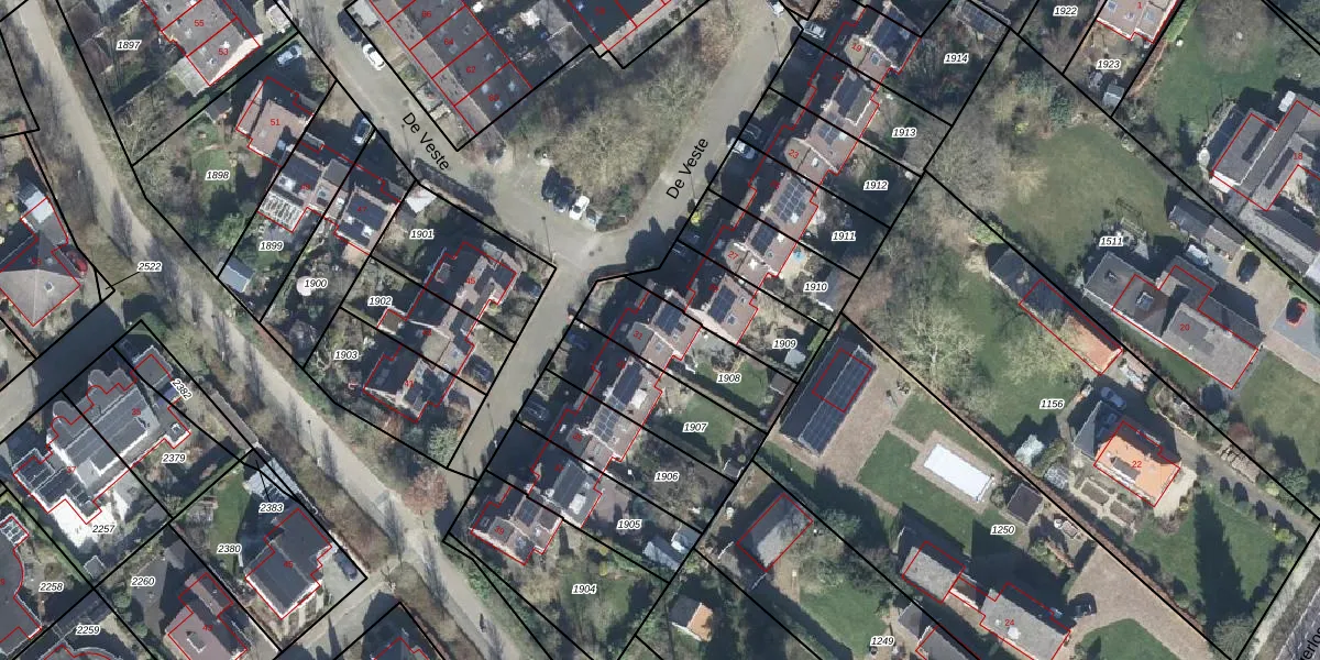 Het perceel waarop De Veste 31 staat heeft een oppervlakte van 300 m². Dit is een groot perceel. De perceeloppervlakte wordt geregistreerd door het Kadaster. Gedetailleerde informatie over de maten van dit perceel kunt u vinden in het rapport Kadastrale kaart met maatvoering van De Veste 31.
