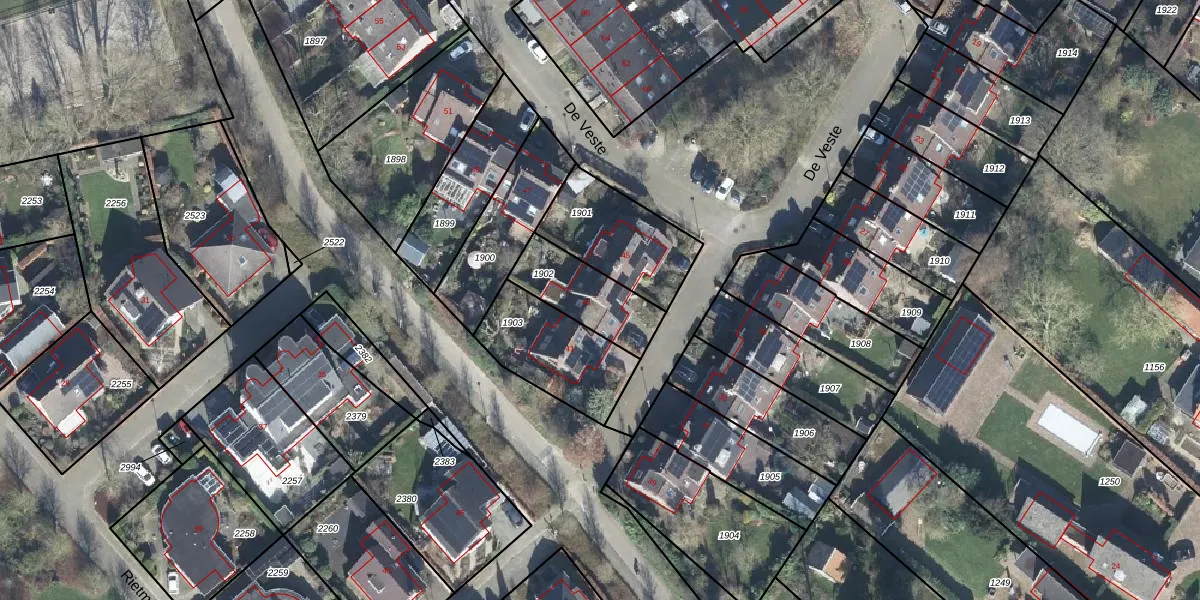 Het perceel waarop De Veste 43 staat heeft een oppervlakte van 230 m². Dit is een middelgroot perceel. De perceeloppervlakte wordt geregistreerd door het Kadaster. Gedetailleerde informatie over de maten van dit perceel kunt u vinden in het rapport Kadastrale kaart met maatvoering van De Veste 43.