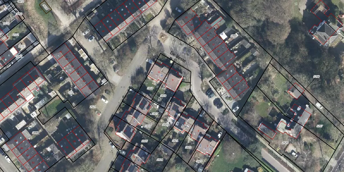 Het perceel waarop De Veste 9 staat heeft een oppervlakte van 281 m². Dit is een middelgroot perceel. De perceeloppervlakte wordt geregistreerd door het Kadaster. Gedetailleerde informatie over de maten van dit perceel kunt u vinden in het rapport Kadastrale kaart met maatvoering van De Veste 9.