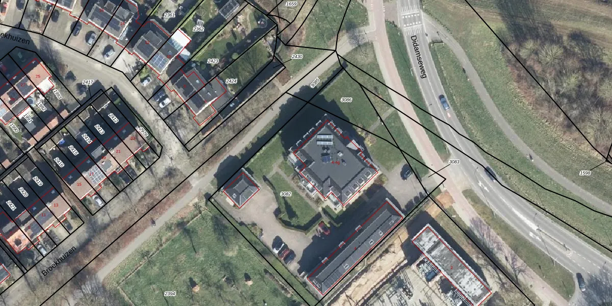 Didamseweg 4-f is gelegen op kadastraal perceel DBG02E3082. Deze kadastrale aanduiding is uniek en wordt gebruikt door het Kadaster om eigendomsrechten en andere zakelijke rechten vast te leggen. Het perceel maakt onderdeel uit van de kadastrale gemeente Doesburg.