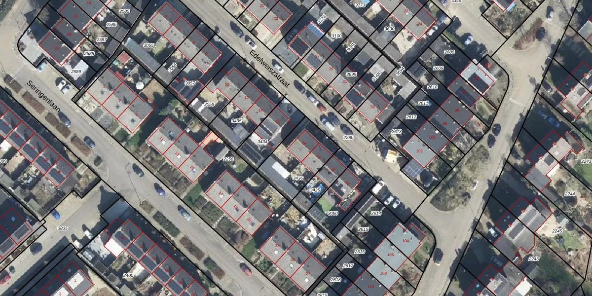 Het perceel waarop Edelweiszstraat 18 staat heeft een oppervlakte van 396 m². Dit is een groot perceel. De perceeloppervlakte wordt geregistreerd door het Kadaster. Gedetailleerde informatie over de maten van dit perceel kunt u vinden in het rapport Kadastrale kaart met maatvoering van Edelweiszstraat 18.