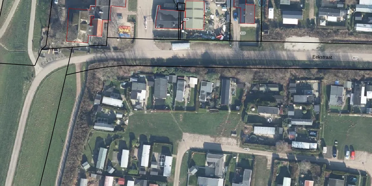 Het perceel waarop Eekstraat 18-a-515 staat heeft een oppervlakte van 2,0 ha. Dit is een zeer groot perceel. De perceeloppervlakte wordt geregistreerd door het Kadaster. Gedetailleerde informatie over de maten van dit perceel kunt u vinden in het rapport Kadastrale kaart met maatvoering van Eekstraat 18-a-515.