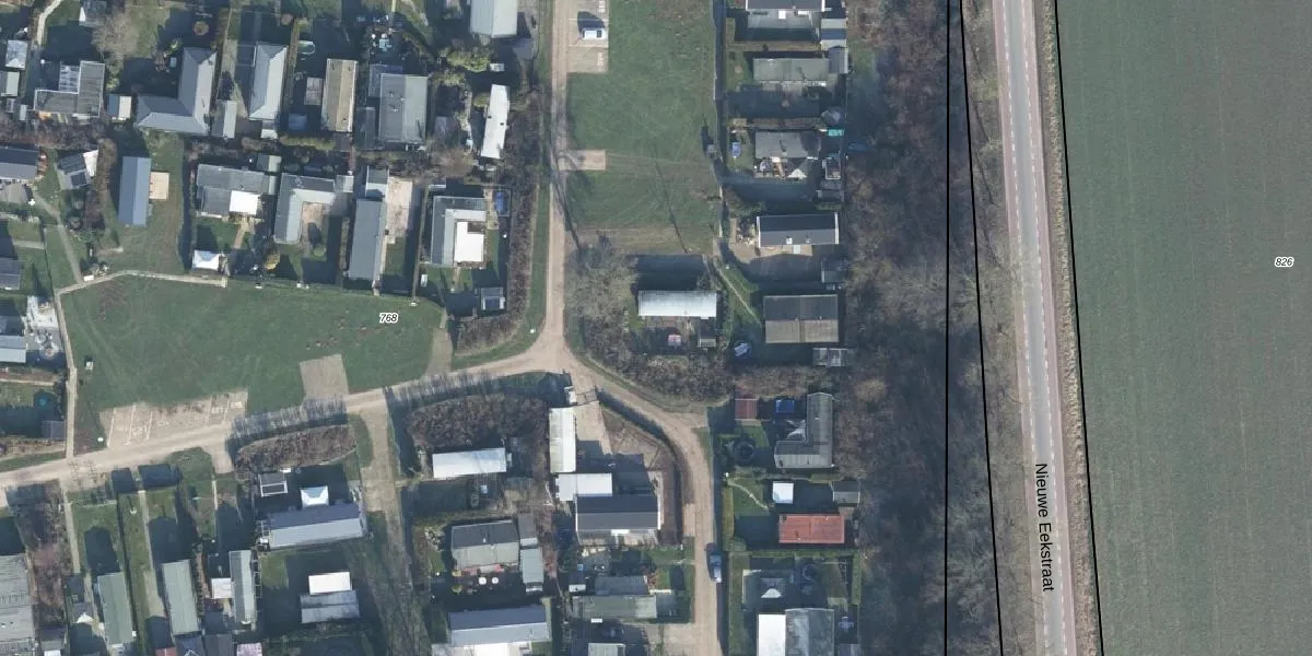 Het perceel waarop Eekstraat 18-a-604 staat heeft een oppervlakte van 4,6 ha. Dit is een zeer groot perceel. De perceeloppervlakte wordt geregistreerd door het Kadaster. Gedetailleerde informatie over de maten van dit perceel kunt u vinden in het rapport Kadastrale kaart met maatvoering van Eekstraat 18-a-604.