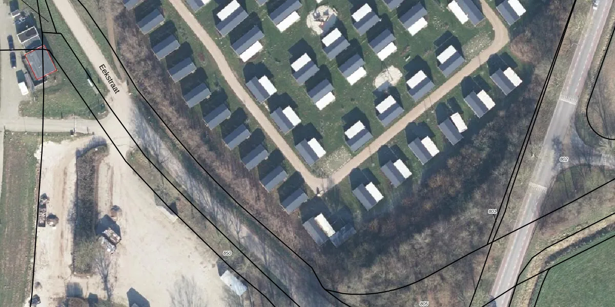 Het perceel waarop Eekstraat 18-a-23 staat heeft een oppervlakte van 3,1 ha. Dit is een zeer groot perceel. De perceeloppervlakte wordt geregistreerd door het Kadaster. Gedetailleerde informatie over de maten van dit perceel kunt u vinden in het rapport Kadastrale kaart met maatvoering van Eekstraat 18-a-23.