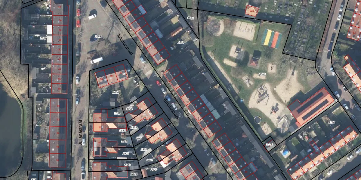 Het perceel waarop Emmastraat 5 staat heeft een oppervlakte van 4485 m². Dit is een zeer groot perceel. De perceeloppervlakte wordt geregistreerd door het Kadaster. Gedetailleerde informatie over de maten van dit perceel kunt u vinden in het rapport Kadastrale kaart met maatvoering van Emmastraat 5.
