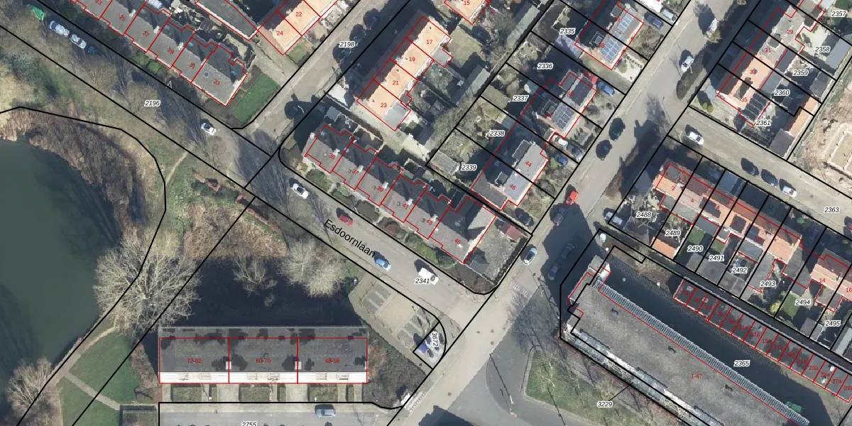 Esdoornlaan 43 is gelegen op kadastraal perceel DBG02B2340. Deze kadastrale aanduiding is uniek en wordt gebruikt door het Kadaster om eigendomsrechten en andere zakelijke rechten vast te leggen. Het perceel maakt onderdeel uit van de kadastrale gemeente Doesburg.