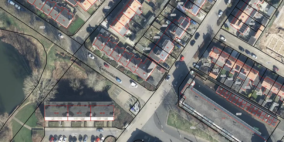 Het perceel waarop Esdoornlaan 45 staat heeft een oppervlakte van 3560 m². Dit is een zeer groot perceel. De perceeloppervlakte wordt geregistreerd door het Kadaster. Gedetailleerde informatie over de maten van dit perceel kunt u vinden in het rapport Kadastrale kaart met maatvoering van Esdoornlaan 45.