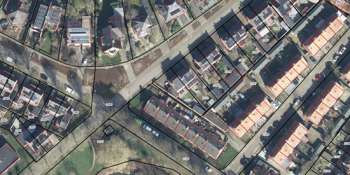 Gebruik de zoekbalk of klik op een perceel voor informatie over de adressen binnen dit perceel.