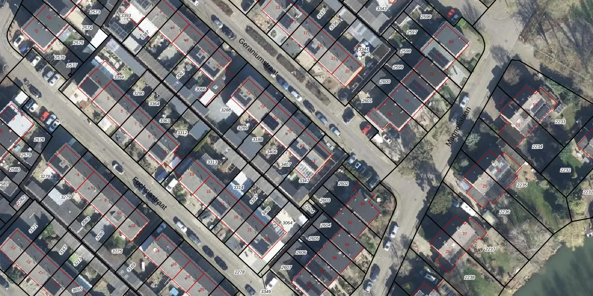 Het perceel waarop Geraniumstraat 22 staat heeft een oppervlakte van 157 m². Dit is een middelgroot perceel. De perceeloppervlakte wordt geregistreerd door het Kadaster. Gedetailleerde informatie over de maten van dit perceel kunt u vinden in het rapport Kadastrale kaart met maatvoering van Geraniumstraat 22.