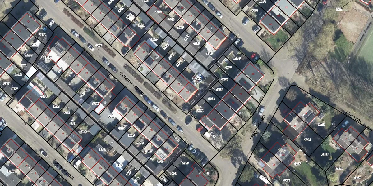 Het perceel waarop Geraniumstraat 23 staat heeft een oppervlakte van 435 m². Dit is een groot perceel. De perceeloppervlakte wordt geregistreerd door het Kadaster. Gedetailleerde informatie over de maten van dit perceel kunt u vinden in het rapport Kadastrale kaart met maatvoering van Geraniumstraat 23.