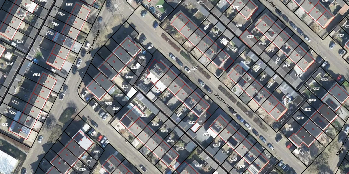Het perceel waarop Geraniumstraat 6 staat heeft een oppervlakte van 748 m². Dit is een groot perceel. De perceeloppervlakte wordt geregistreerd door het Kadaster. Gedetailleerde informatie over de maten van dit perceel kunt u vinden in het rapport Kadastrale kaart met maatvoering van Geraniumstraat 6.