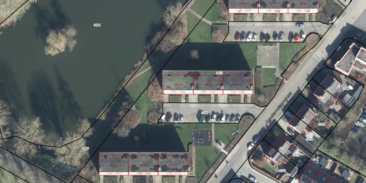 Het perceel waarop Goudenregenstraat 108 staat heeft een oppervlakte van 7634 m². Dit is een zeer groot perceel. De perceeloppervlakte wordt geregistreerd door het Kadaster. Gedetailleerde informatie over de maten van dit perceel kunt u vinden in het rapport Kadastrale kaart met maatvoering van Goudenregenstraat 108.