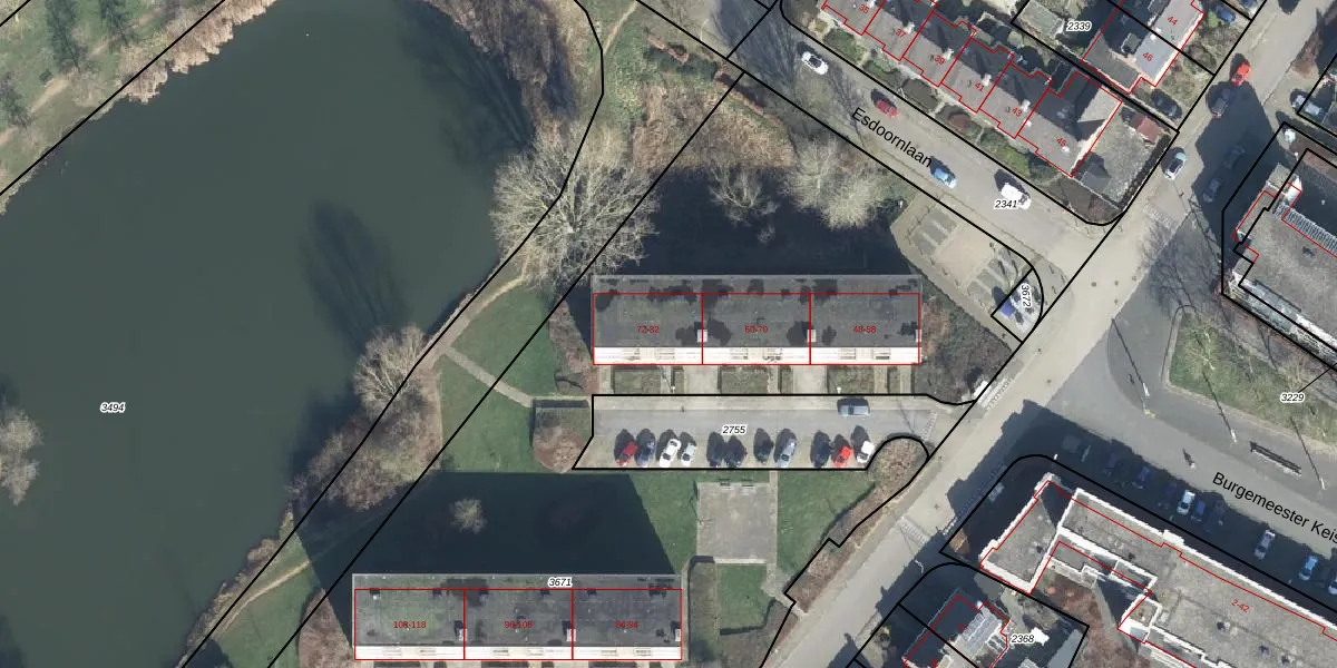 Het perceel waarop Goudenregenstraat 76 staat heeft een oppervlakte van 7634 m². Dit is een zeer groot perceel. De perceeloppervlakte wordt geregistreerd door het Kadaster. Gedetailleerde informatie over de maten van dit perceel kunt u vinden in het rapport Kadastrale kaart met maatvoering van Goudenregenstraat 76.
