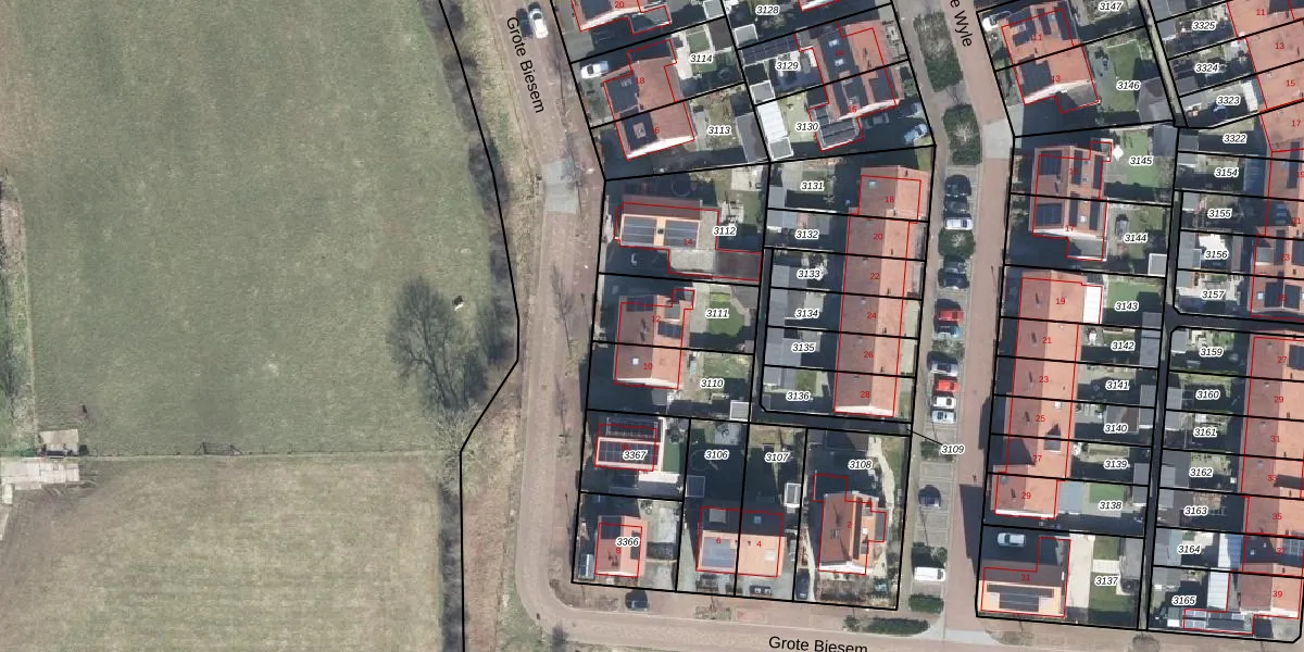 Het perceel waarop Grote Biesem 12 staat heeft een oppervlakte van 263 m². Dit is een middelgroot perceel. De perceeloppervlakte wordt geregistreerd door het Kadaster. Gedetailleerde informatie over de maten van dit perceel kunt u vinden in het rapport Kadastrale kaart met maatvoering van Grote Biesem 12.