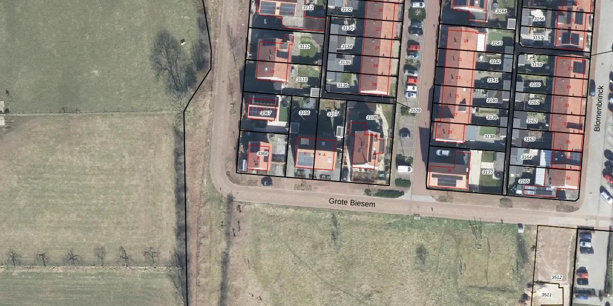Gebruik de zoekbalk of klik op een perceel voor informatie over de adressen binnen dit perceel.